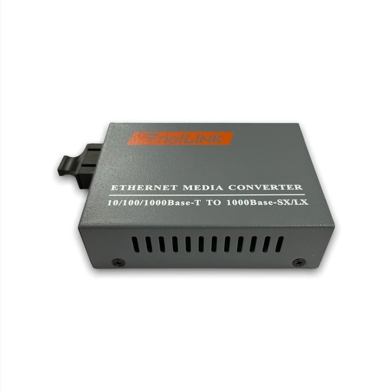 مدیا کانورتور فیبرنوری HTB-GS-03 Single-mode از ابزار مهم و کاربردی مورد استفاده در شبکه فیبر نوری می باشد. معرفی مدیا کانورتورنت لینک: مدیا کانورتور نت لینک یکی از پر فروش ترین مبدل های فیبر نوری است که با وزنی برابر 120 گرم و کیفیت بسیار خوب به فروش میرسد. این مدیا کانور دارای یک پورت RJ45 و یک پورت فیبر نوری از نوع SFP هست که توانایی سیگنال های شبکه را از کابل مسی به امواجی نوری بر روی کابل های فیبر نوری مانند سینگل مود انتقال دهد و تبدیل کند. این مدیا کانورتور قابلیت این را دارد که پشتیبانی کند از ماژول های فیبر نوری با کانکتور SC و دیتا را با موجی که طولش 90 متر است را تا 20 کیلومتر برد بدهد. دارای یک پورت اترنت با سرعت x10x100xMBPC استفاده میشود و در شبکه به صورت تکی و لینک نیز متصل میشود.اگر اطلاعات توسط این مدیا کانورتور به یک سوویچ که پورت فیبر دارد انتقال داده شود دیگه نیازی به انواع مبدل ندارید. این مدیا کانورتور نت لینک برای برق خوذ از یک اداپتور AC240 N ولت استفاده میکند. مدل این محصول شرکت نت لینک است که دارای ارتفاع 4 سانتیمتر و عرض 3 سانتی متر است. دارای LED های TX ,LINK ACT .FX.FDX.PWR است.