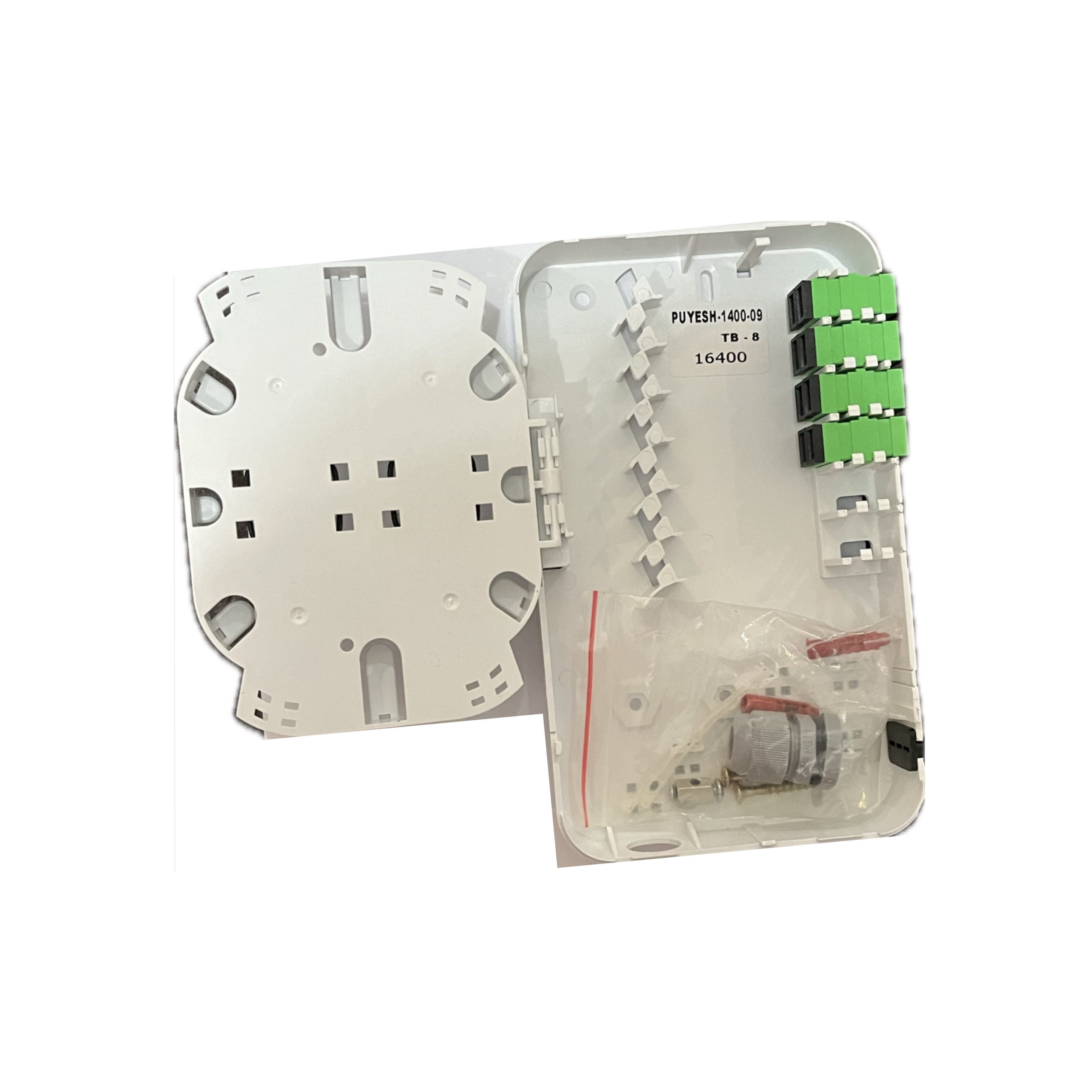 ترمینال باکس فیبر نوری ۸ پورت (Fiber Optic Terminal Box 8 Port)، یک دستگاه شبکه است که برای اتصال کابل های فیبر نوری به دستگاه های شبکه مورد استفاده قرار می گیرد. این باکس ها معمولاً به صورت یک جعبه کوچک و قابل نصب در دیوار یا رک مونت شونده هستند و می توانند به عنوان نقطه اتصال اصلی (Main Distribution Point) در شبکه های فیبر نوری استفاده شوند.