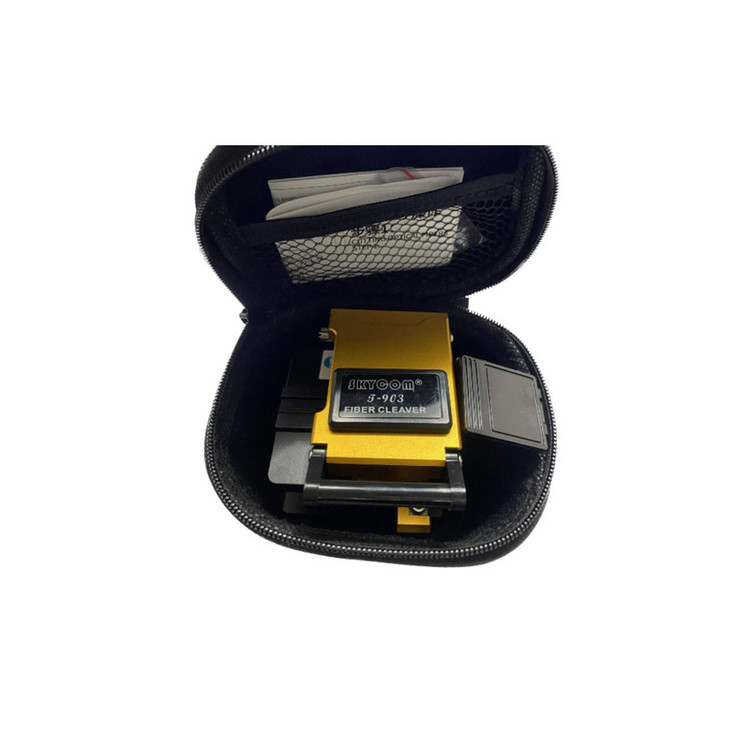 کلیور فیبر نوری اسکای کام مدل T-903 دارای عملکرد پایدار با فرآیند Multi-Action بوده و از زاویه شکاف معمولی 0.5 ± 90 درجه سانتیگراد بهره برده است. این کلیور فیبر نوری از تیغه برش با دقت بالا و 16 نقطه براق برخوردار است و سطح بدنه آنودایز شده آن بدون خراش می باشد. این کلیور فیبر نوری با ابعاد 63x76x63 میلیمتر تولید شده است و در توسعه فیبر نوری با کیفیت عالی می توانید خریداری کنید. کلیور فیبر نوری T-903 عمر تیغه با بیش از 36000 کات است طول کابل فیبر در این کلیور فیبر نوری اسکای کام 9 تا 16 میلی متر می باشد. فیبر قابل اجرا در این کلیور فیوژن فیبر نوری SM، MM، DS، NZ-DS، EDF می باشد.